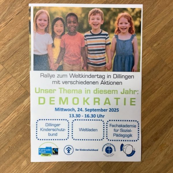 Der Weltkindertag am 20.09.2018 wurde in Dillingen als eine Gemeinschaftsaktion der Dillinger Fachakademie für Sozialpädagogik mit dem Dillinger Kinderschutzbund, dem Eine-Welt-Laden und der Fairtrade-Steuerungsgruppe der Stadt Dillingen gestaltet.