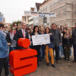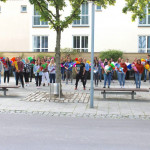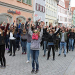 Am Freitag, den 14.10.2016, fand um 12.15 Uhr in der Königstraße Dillingen ein Flashmob zum Lied „New York, New York“ statt, der von Studierenden der 1. Klassen und Lehrkräften der Fachakademie für Sozialpädagogik organisiert wurde. Hintergrund war eine Wette, die die Faks der Kreis- und Stadtsparkasse Dillingen angeboten hatte, um ihre Schulbücherei mit neuer Fachliteratur zu aktualisieren. Rund 100 Passanten nahmen an der Aktion teil, u. a. der Oberbürgermeister der Stadt Dillingen, Frank Kunz, Schwestern der Dillinger Franziskanerinnen und viele mehr, sodass die Wette gewonnen und ein Scheck im Wert von 500,- Euro im Anschluss von Vertretern der Kreis- und Stadtsparkasse Dillingen an die Fachakademie übergeben werden konnte. Lesen Sie hierzu auch einen Bericht der Donau Zeitung oder sehen Sie sich auf der Facebook-Seite von Hitradio RT1 Nordschwaben ein kurzes Video dazu an. Einen Videoclip über die gesamte Aktion, den Studierende des Wahlpflichtfaches Medienarbeit produziert haben, können Sie sich hier ansehen.