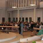 Was verdient ein Arbeiter in Asien an der Herstellung eines Paar Turnschuhe, das im Sportgeschäft 100 Euro kostet? Diese Fragestellung führte die Studierenden der theoretischen Ausbildung ganz schnell mitten hinein in das Thema des Seminars, das von der Religionspädagogin Frau Falk und der ehemaligen Faks-Lehrerin Frau Kügel-Merkel vorbereitet und durchgeführt wurde. Es ging um gerechten Handel, faire Löhne und darum, wie die sogenannte Erste und Dritte Welt miteinander verwoben sind. Und wie jeder und jede von uns Einfluss darauf nehmen kann, die Welt, in der wir leben, ein kleines Stück weit gerechter zu machen, so dass ein Arbeiter nicht mehr nur 40 Cent verdient und so Hunger und Fremdbestimmung überwinden kann. Eine anregende Diskussion über eigenes Konsumverhalten kam dabei auf. In einem zweiten Schritt wurden die TN anhand des Eine-Welt-Puzzles mit der Situation der Kinder in der sogenannten Dritten Welt konfrontiert und Probleme aufgezeigt, wie: Kinder auf der Flucht, Kinderarbeit, geringe Bildungschancen, Straßenkinder, medizinische Unterversorgung und Kindersterblichkeit. An zwei Beispielen wurde dabei aufgezeigt, wie das Kindermissionswerk Kindern und Jugendlichen in Nepal und Kambodscha hilft: Über eine Powerpoint-Präsentation erfuhren die TeilnehmerInnen, wie das Projekt Maiti Nepal Mädchen und jungen Frauen aus Nepal, die zur Prostitution in Indien verkauft werden, hilft, in ein selbstbestimmtes Leben zurückzukehren, anschaulich war auch ein Film über Einrichtungen für behinderte Kinder und Jugendliche in Kambodscha. Den Abschluss des Tagesseminares bildete der praktische Teil: In verschiedenen Arbeitsgruppen wurden ein Schattenspiel, eine Klanggeschichte, eine religionspädagogische Einheit, Tänze und Spiele aus aller Welt einstudiert und zur Vorstellung gebracht.
