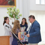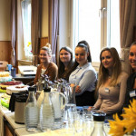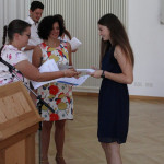 Der zweite Teil der Feierlichkeiten fand – nach einem ausgiebigen Sektempfang, der durch Studierende der ersten Klassen organisiert worden war – im Festsaal von St. Ulrich statt. In Anwesenheit der Lehrkräfte, der Absolventen und deren Familien, sowie der Studierenden der 1. Klassen dankten die Klassensprecher im Namen aller Absolventinnen und Absolventen den Lehrern für die Vermittlung des Fachwissens und überreichten ihnen selbst gestaltete Präsente, die, ganz im Sinne des Selbstverständnisses der Fachakademie als Fair-Trade-Schule, mit fair gehandelten Produkten bestückt waren. Mit ergreifenden Worten bedankten sich die Studierenden anschließend auch bei ihren Eltern für deren Unterstützung in jeglicher Hinsicht. Eine besondere Überraschung hatten die Studierenden der ersten Klassen für ihre ehemaligen Tutoren vorbereitet: Sie sangen gemeinsam den Song „Wir sind groß“ von Mark Forster und wünschten ihren ehemaligen Paten nach einem tosenden Applaus mit selbst gebastelten persönlichen Geschenken alles Gute auf ihrem weiteren Weg ins Berufsleben. Am Ende des zweiten Teils erhielten die ersten Klassen noch ihre Jahreszeugnisse.