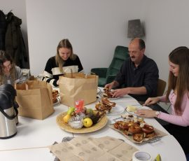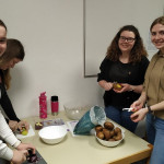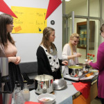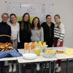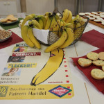 Um unsere Studierenden mit genügend Power für die „Knaxiade“ – unser alljährliches Schulsportfest – zu versorgen, hatte die Fairtrade-Gruppe der Fachakademie am 23.03.2018 ein reichhaltiges gesundes Büffet zusammengestellt. Als Fairtrade-Schule wurde darauf geachtet, saisonale und regionale Produkte anzubieten: So gab es Apfelsaft aus unseren Gartenäpfeln ebenso wie fair gehandelten Orangensaft. Sehr gefragt waren die Gemüse-Rohkoststicks und selbstgemachte Joghurt-Dips. Eine lokale Bäckerei belieferte uns mit frischen Brötchen, die mit vielen verschiedenen selbstgemachten Brotaufstrichen zu feinen Köstlichkeiten zubereitet wurden. Aus dem Dillinger Eine-Weltladen holten wir uns vitaminreiche Energie durch fair gehandelte Bananen und Nüsse. Auf die hübschen Osterschokoladen und die feinen Zitronenkekse aus unserem Dillinger –Eine-Weltladen wollten wir – trotz Fastenzeit – nicht verzichten.