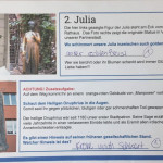 „Die Idee war toll! Auch die kreative methodische Umsetzung hat mir gefallen. Die Ideen wie z.B. Bilderbuchkino waren für mich neu und ich möchte die Ideen auch selber mal im Kindergarten umsetzen. Eigentlich war es aber schon schade, dass sich fast niemand von außen die Ausstellung angeschaut hat.“ Lea Wasner und Marie Schilling, 1. Klasse