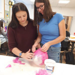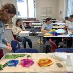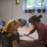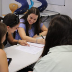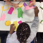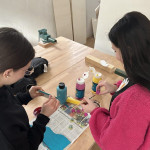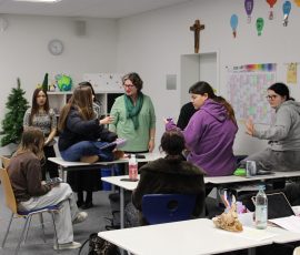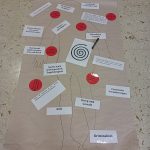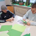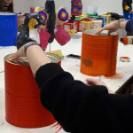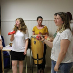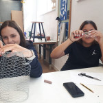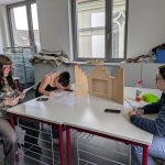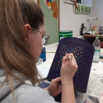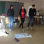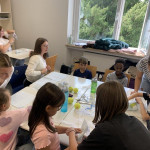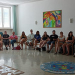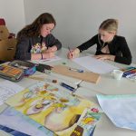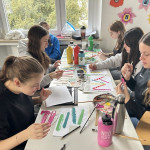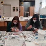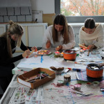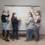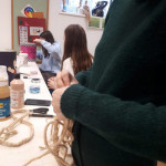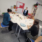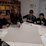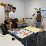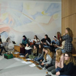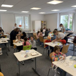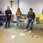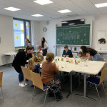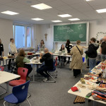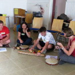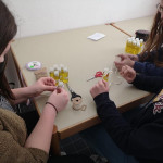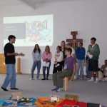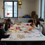 Der letzte Teil der Einheit war sehr praxisorientiert. Die Studierenden schlossen sich Arbeitsgruppen an, in denen sie Cometas – drachenförmige Symbole des Friedens -, Papierperlenketten oder etwas Kreatives zum Pappkarton bastelten, aber auch Angebote zum Märchen „Sternenkinder“ oder zur Gründerin des Kindermissionswerkes erstellten.