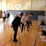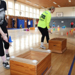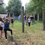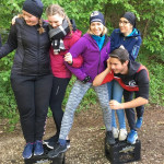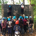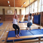 Ein besonderer Nervenkitzel waren die Actionelemente. Die 1a entschied sich für das Baumstammspringen. Freihändig und nur durch einen Gurt gesichert auf einem Baumstamm in 9m Höhe zu stehen und dann auch noch ins Leere zu springen erfordert eine Menge Mut. Ermutigender Zuspruch und die motivierenden Worte der Klassenkameraden waren dabei eine große Hilfe und haben dazu beigetragen, dass auch diese Herausforderung gemeistert wurde.