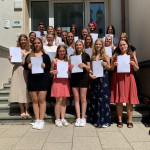 Nach einem gemeinsamen Mittagessen im Landgasthof „Zum Schlössle“ in Finningen eröffnete die Schulband unter Leitung von Tobias Mecklinger die Feier. Besondere Wertschätzung erfuhren die Studierenden nochmals durch die persönliche Überreichung ihrer Dokumente. Schulleiter, Werner Eitle, und die jeweiligen Klassenleiter gratulierten den Absolventinnen und Absolventinnen und gaben dabei ihrer Freude über den Erfolg Ausdruck. Julia Wiedenmann, Jessica Wiedemann, Elisa Schreiber, Lisa-Marie Fuchsluger, Ramona Wengert und Raphael Buberl schlossen den theoretischen Teil der Ausbildung mit einem sehr guten Schnitt ab. Zu dem Gelingen der Abschlussfeier trugen ganz nach dem Motto „Ein Teil des Ganzen“ zahlreiche Studierende und Lehrkräfte mit kreativen und musikalischen Beiträgen bei. So überraschten Studierende der Abschlusskassen die Festgäste mit Tanz- und Gesangseinlagen und auch die Klassenleiter hatten zur Überraschung der Absolventen eine Musikeinlage einstudiert. Großen Applaus erhielt auch die Schulband für die gelungene musikalische Umrahmung des Tages.