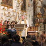 Schüler der Realschule und des Gymnasiums gestalteten musikalisch den feierlichen Rahmen des Gottesdienstes mit dem Thema „Mit der Wurzel verbunden – Franziskus unser Leitbild“. Die Lesung aus dem Evangelium nach Matthäus (Mt 11,25-30) bestärkte darin, die Last des Lebens mit Vertrauen auf Jesus zu schultern. Wie die Dillinger Franziskanerinnen einst auf Anweisung des Fürstbischofs Clemens Wenceslaus widerwillig den Schulunterricht aufnahmen, zeigt, dass auch zunächst abgelehnte Aufgaben unerwartet positive Wirkungen haben können. Aus anfänglichem Zögern kann Großes erwachsen.