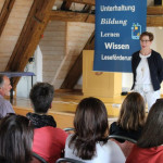 In ihrer lockeren und sympathischen Art räumte die Referentin schließlich noch mit einigen Mythen auf, wie der Behauptung, dass Kindern in der bedürfnisorientierten Pädagogik alle Wünsche erfüllt werden. Zitat: „Es heißt bedürfnisorientiert, nicht bedürfnisgarantiert!“