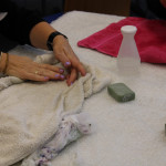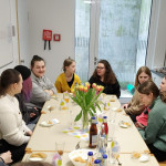 Bei einem Besuch der Hebamme Frau Braun-Springer konnten Pflege, Wickeln, verschiedene Tragetechniken u.v.m. praktisch geübt werden.