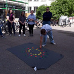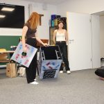 Im Anschluss wurde ein Kinderrecht genauer unter die Lupe genommen, und zwar das Recht auf ein beschützendes Zuhause. Danach wurde der Umriss einer Studierenden auf einen Pappkarton gezeichnet. Dies sollte verdeutlichen, was es bedeutet, wenn ein Kind auf der Straße lebt.