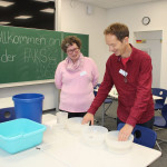 Am Samstag, den 14.10.2017, fand an der Fachakademie für Sozialpädagogik Dillingen der „Tag der offenen Tür“ statt. Bereits vormittags ab 11.00 Uhr konnten sich an der Ausbildung Interessierte in einem Vortrag der Schulleitung Werner Eitle bzw. Stellvertretenden Schulleitung Tanja Barfüßer und durch geladene Vertreter aus der Praxis über das Berufsbild der Erzieherin/des Erziehers informieren. Anschließend bot sich die Möglichkeit, die Fachakademie zu besichtigen. Hierfür hatten Studierende der 1. und 2. Klassen mit den Lehrkräften in den Räumlichkeiten der Fachakademie verschiedene Angebote vorbereitet, um den Besucherinnen und Besuchern einen Einblick in die Unterrichtsfächer zu gewähren. So wurden Experimente gemacht, gemeinsam musiziert und diskutiert. Einige der Studierenden haben beispielsweise zusammen mit der Lehrkraft Veronika Scheuerer Bilderbuchkinos vorbereitet und präsentiert. Zudem hat Ulrich Pooch bei den Besuchern durch seine äußerst lebhaften und ansprechenden Bilderbuchvorlesungen für fesselnde Momente und einen bleibenden Eindruck gesorgt. Wer wollte, konnte sich ein Bild von der Fachakademie als Kneipp-Schule machen oder sich Einblicke in die aktive Medienarbeit verschaffen. Das Montessori Konzept wurde anhand von Montessori-Material verdeutlicht. Darüber hinaus bestand die Möglichkeit sich in der Bibliothek der Fachakademie über Bilderbücher, die zum Thema „Alles Familie“ von Bücher Brenner Dillingen bereitgestellt wurden, zu informieren. Studierende der Fachakademie bewirteten die Gäste zur Stärkung mit Kaffee und selbstgebackenem Kuchen. Auch die Fair-Trade-Gruppe bot in diesem Zusammenhang „Eine-Welt-Waren“ zum Kaufen an.