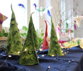 Gemeinsame Lieder wurden angestimmt und alle Anwesenden holten sich kleine selbst gestalteten Weihnachtsbäume mit dem Hinweis „Du bist perfekt so wie du bist“.