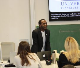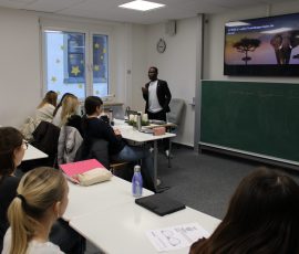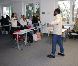 Einen weiteren spannenden Einblick bot Sayo Sangare mit seinem Vortrag „Afrika ist kein Land: Zwischen Realität und Stereotypen“. Ein kurzes Quiz zeigte, wie verbreitet Klischees über Afrika sind. Herr Sangare erklärte deren historische Wurzeln, stellte die Nachhaltigkeitsziele der UN vor und präsentierte bedeutende afrikanische Reiche. In kleinen Gruppen sammelten die Studierenden Ideen, wie man Stereotype bewusst hinterfragt und vermeidet.