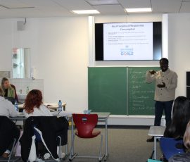 Am 21.11.2024 wurde es an der FAKS international. Aus vielen Nachhaltigkeitsthemen konnten die Studierenden zwei Themen näher kennenlernen. Es ging vor allem um die Nachhaltigkeit in Bezug auf Elektroschrott und auch um das Thema Bildung.