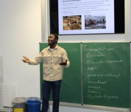 Sehr eindrucksvoll war der Vortrag „Proud of My Forest“ von Obed Nii Amarteifio. Er führte die Studierenden nach Ghana – sprach über kulturelle Traditionen, das Leben in Mehrgenerationenfamilien und die enorme sprachliche Vielfalt des Landes. Gleichzeitig machte er auf Herausforderungen wie Ressourcenknappheit, Umweltverschmutzung und fehlende Recyclingstrukturen aufmerksam. Seine Botschaft: Nachhaltiges Handeln ist immer auch soziale Verantwortung. Fragen waren ausdrücklich erwünscht und führten zu einem lebendigen Austausch.