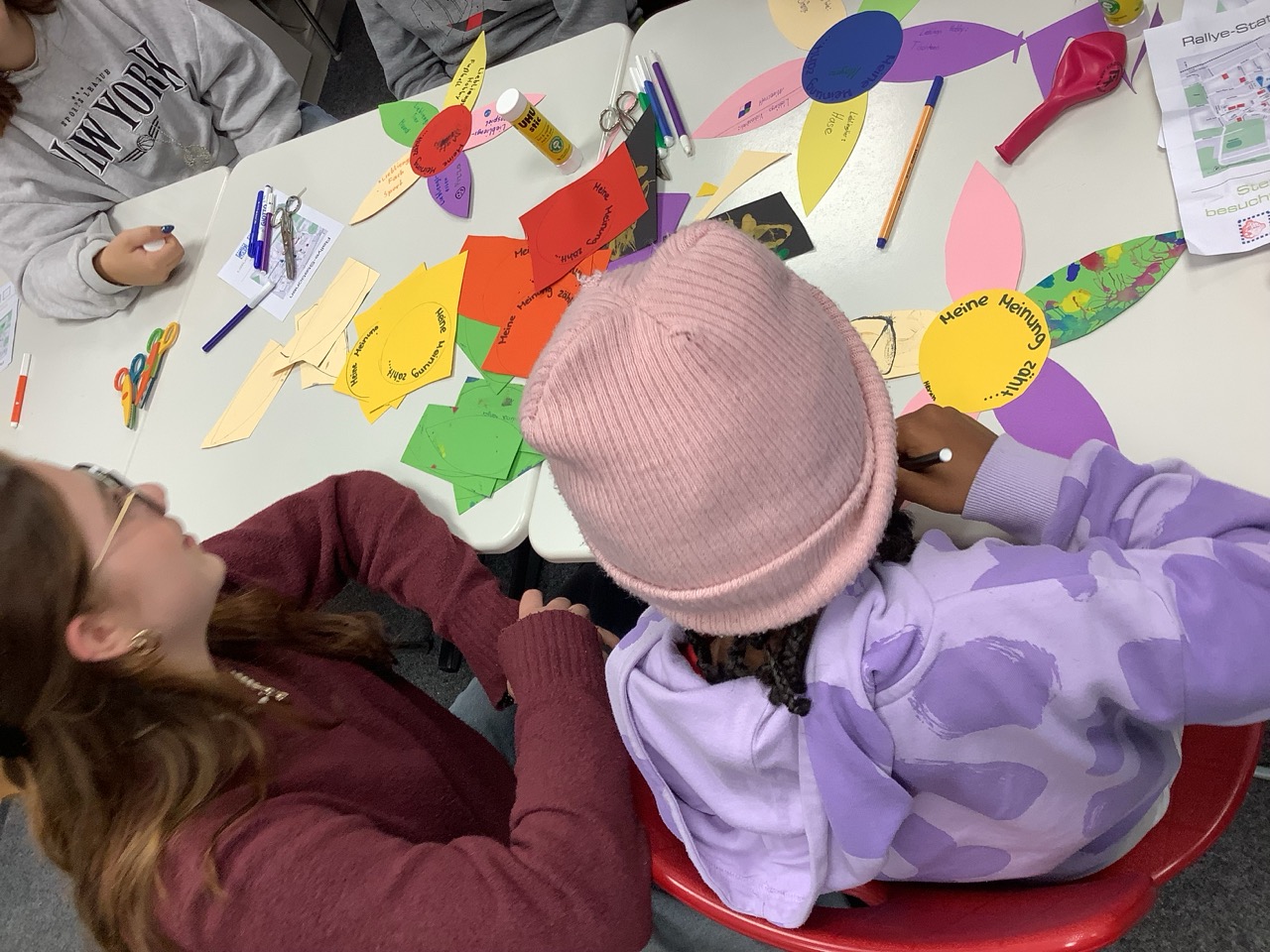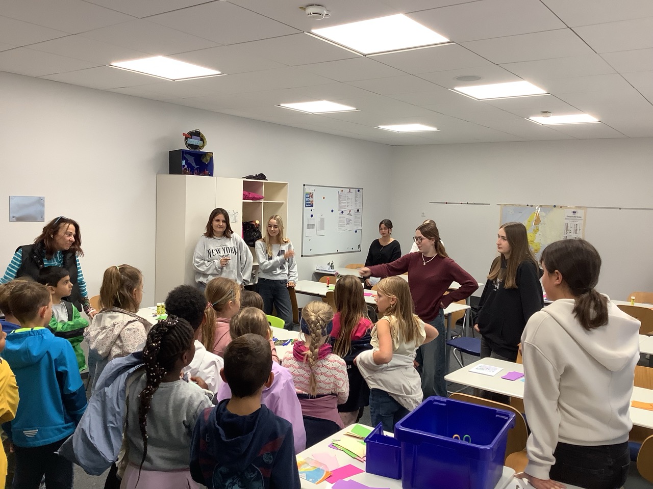 Die Studierenden der Fachakademie begrüßten am Mittwoch, den 24.09.2025, die Grundschulkinder der 2., 3. und 4. Klasse der Grundschule Dillingen. Gemeinsam gestalten sie Demokratieblumen, bei denen jedes Kind seine Stimme und Perspektive einbringen konnte. Die Grundschulkinder formulierten: „Meine Meinung zählt“ und teilten Lieblingsfarbe, Lieblingsgericht und ihren Superhelden/ihre Superheldin. Am Ende ist jede Stimme gleich wichtig, und die Vielfalt der Meinungen macht Demokratie lebendig.