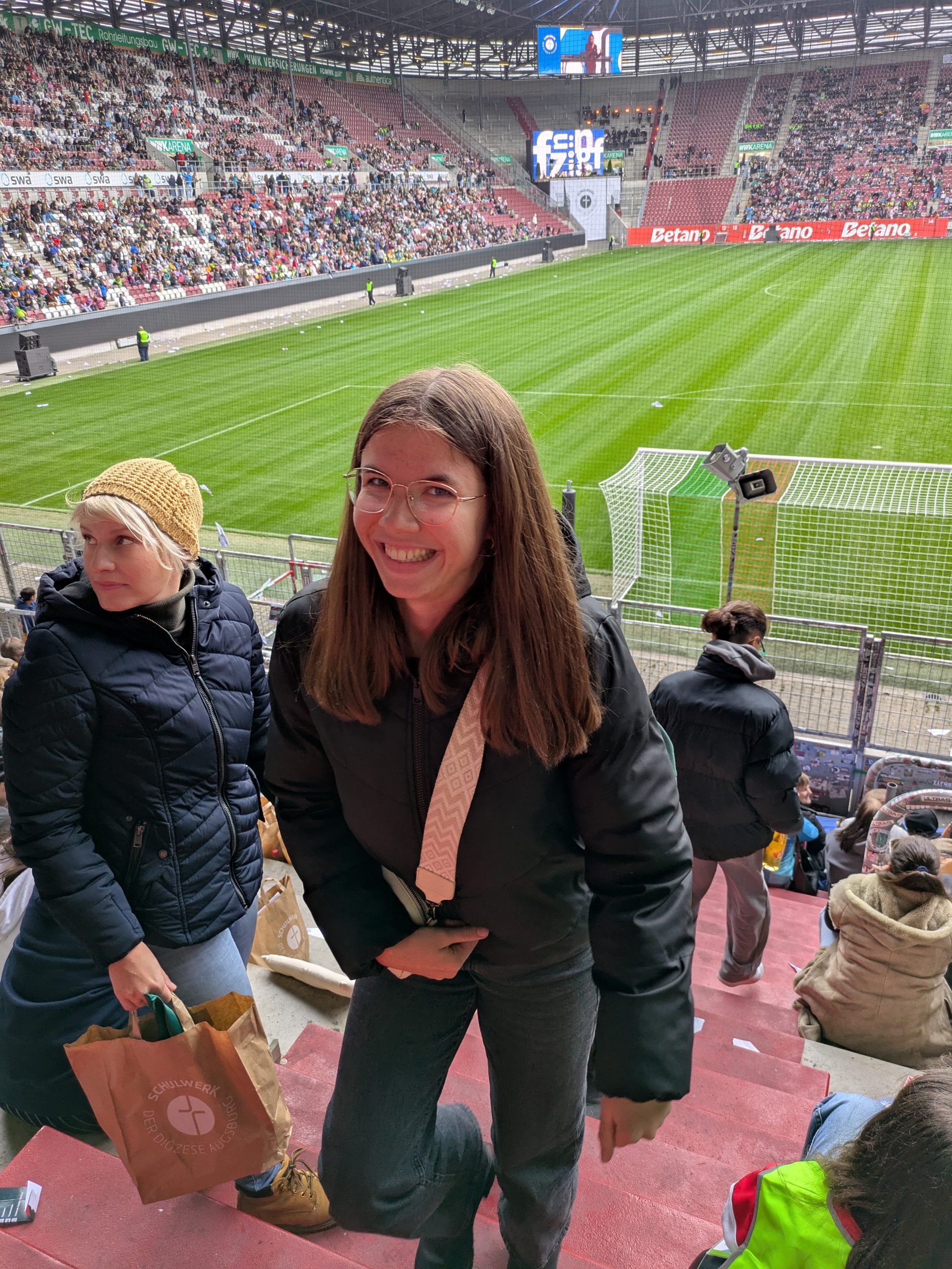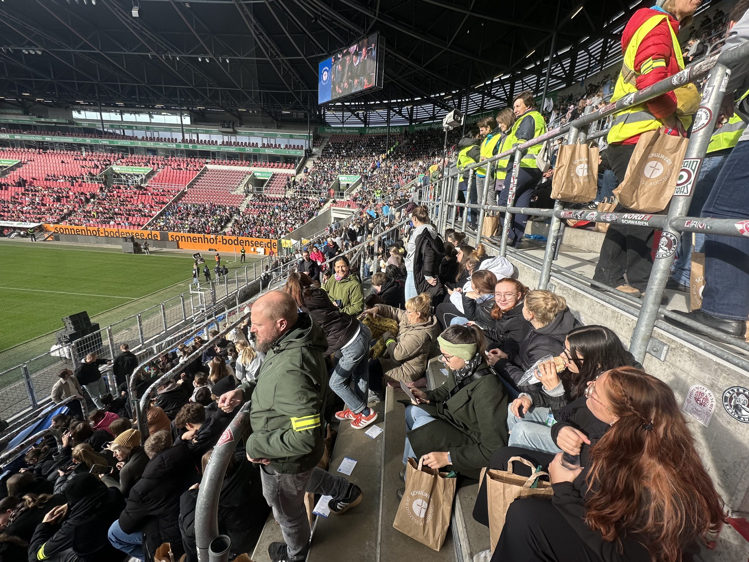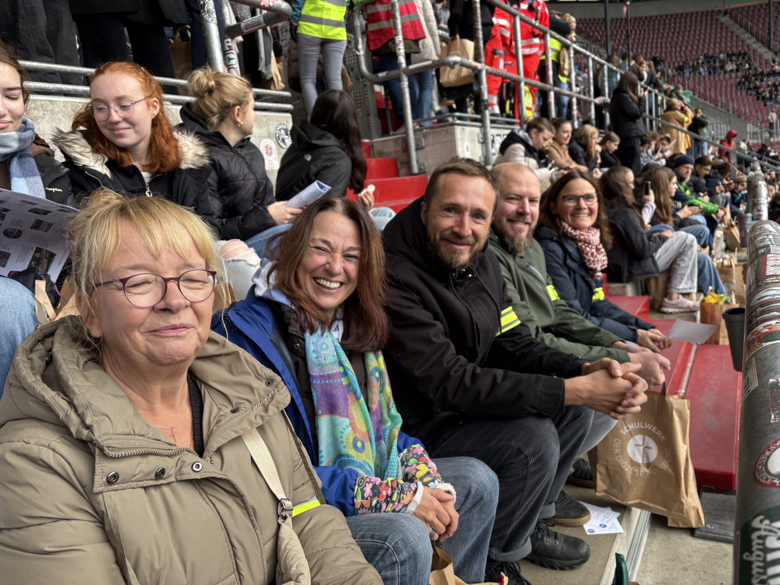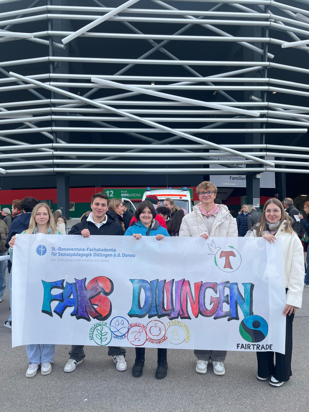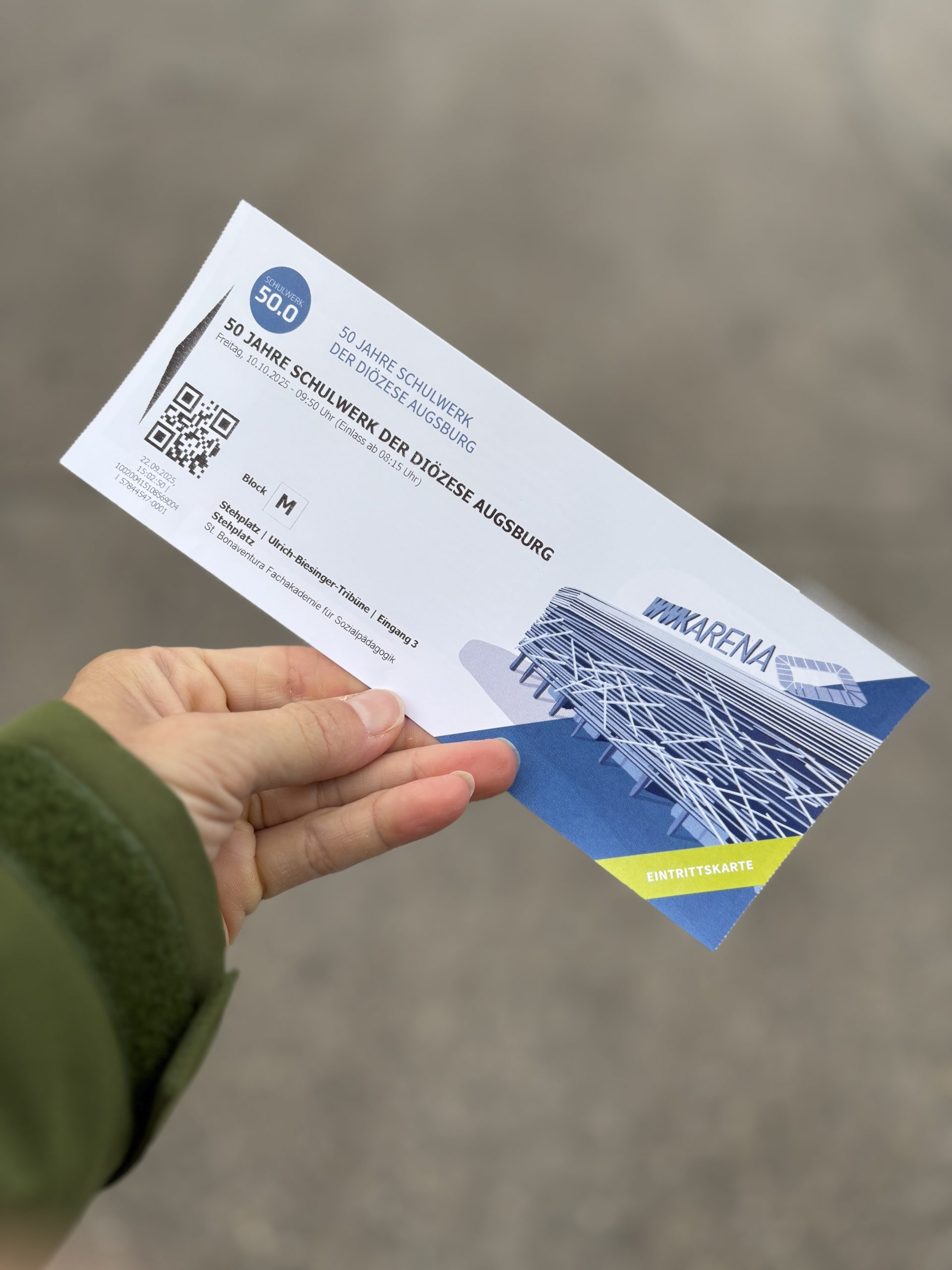 Am Freitag, den 10.10.2025, feierten über 20.000 Schülerinnen und Schüler, 2.300 Mitarbeitende aus 46 Schulen und auch unsere Studierenden, Berufspraktikant_innen und Lehrkräfte der Fachakademie in der WWK Arena Augsburg das 50-jährige Jubiläum unseres Trägers, des Schulwerks der Diözese Augsburg, unter dem Motto „Wie Adlern wachsen uns Flügel“.