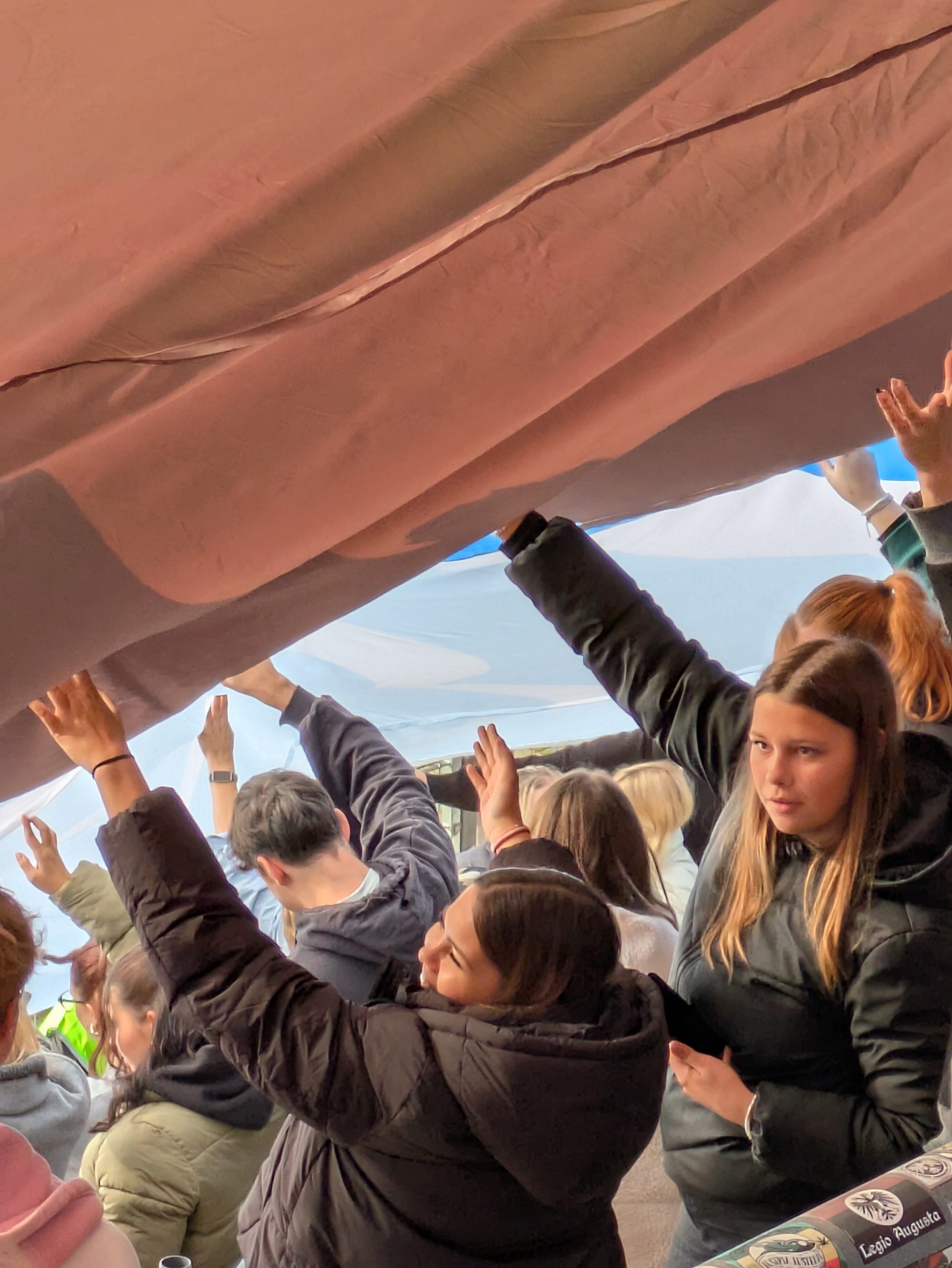 Die 1b entschied sich für die Riesenschaukel. Die Studierenden wurden an einer kleine Leiter, die an der Schaukel eingehängt ist, in die Höhe gezogen und auf ein Kommando ging es ab in die Tiefe. Auch hier war der Nervenkitzel groß und die Reaktionen reichten von lässigen Blicken bis hin zu lauten Tarzanschreien.