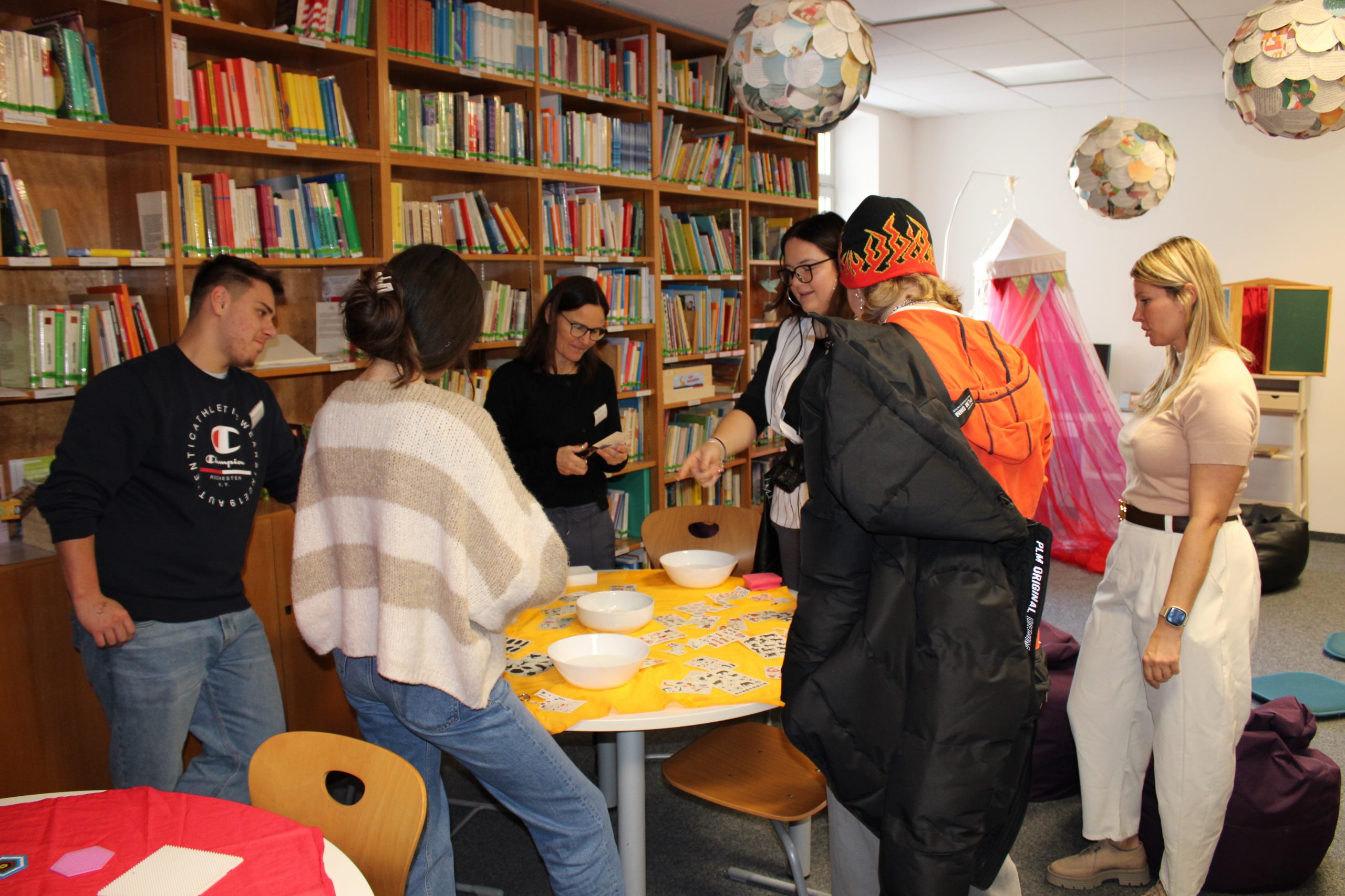 Die Blockwoche im Sozialpädagogischen Seminar I stand wieder unter dem Motto „Kennenlernen“. Dazu organisierten die Lehrkräfte an einem Tag ein „City Bound“ durch Dillingen. Dies ist eine Art Stadtrallye, bei der die Praktikanten verschiedene Aufgaben erledigen mussten, die sie aber nur gemeinsam und durch Kommunikation mit anderen Dillingern vor Ort meistern konnten. So bekamen die Erzieherpraktikanten einen Tauschgegenstand, z.B. einen Kugelschreiber, ein Päckchen Taschentücher oder Gummibärchen, die sie in der Stadt gegen einen höherwertigen Gegenstand eintauschen sollten. Eine andere Aufgabe war es, möglichst viele Stempel auf einem Blatt Papier zu sammeln. Mittels einer Banane sollten verschiedene Objekte in der Innenstadt vermessen werden. Ein kreatives Gruppenfoto zu gestalten rundete die Rallye ab. Alle Praktikanten waren sich einig, dass sie an diesem Tag nicht nur viel gelacht und Spaß miteinander hatten, sondern sie sich und auch ihre Schulstadt nun besser kennengelernt und eine gute Grundlage für die nächsten beiden Schuljahre gelegt hatten.
