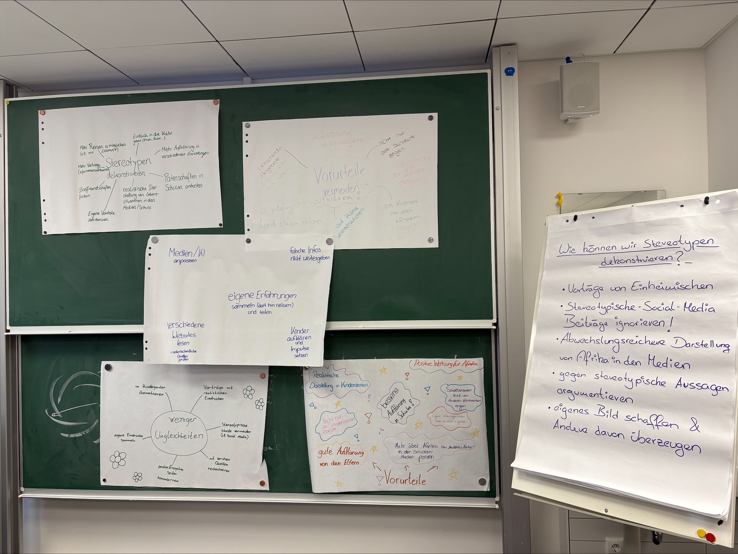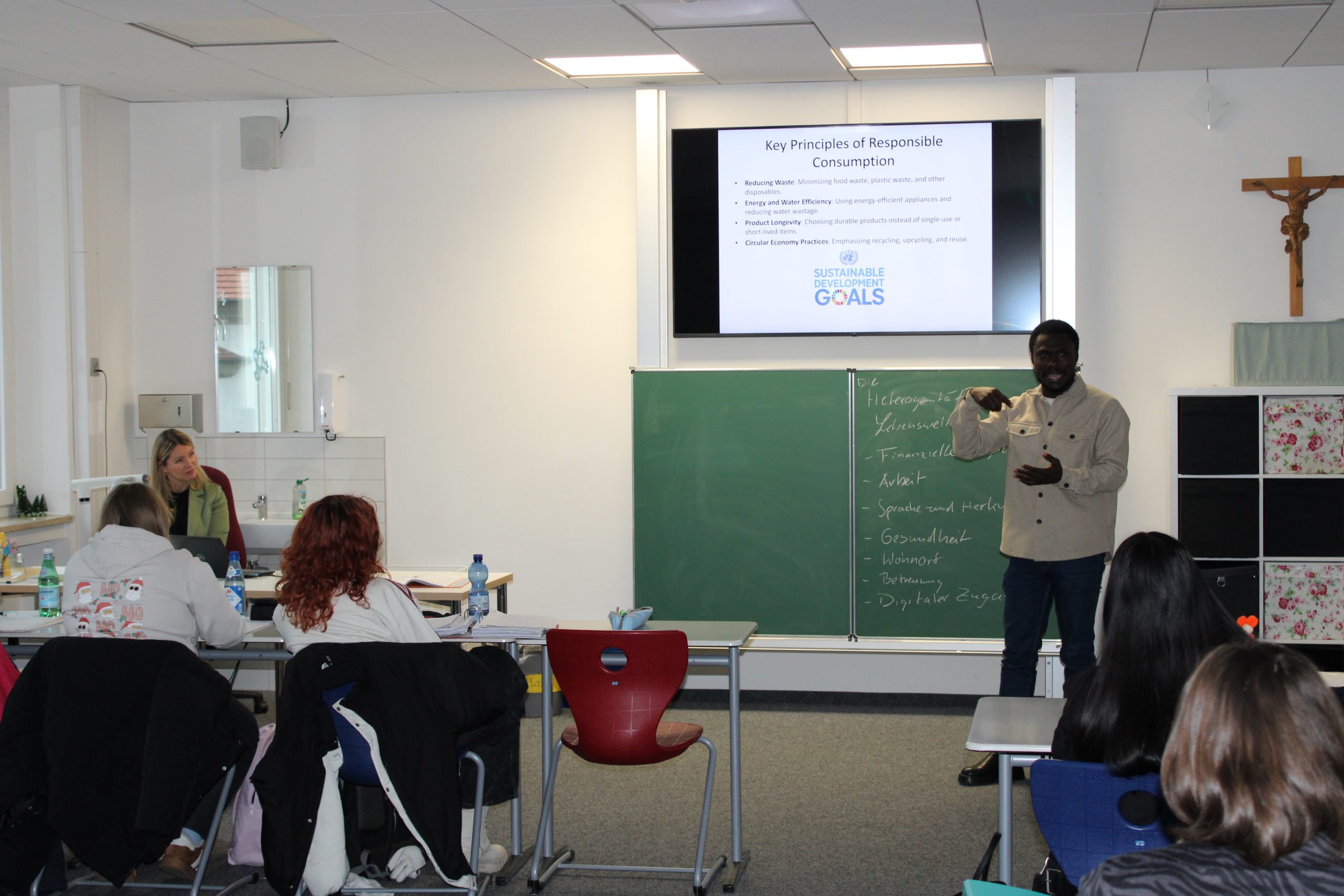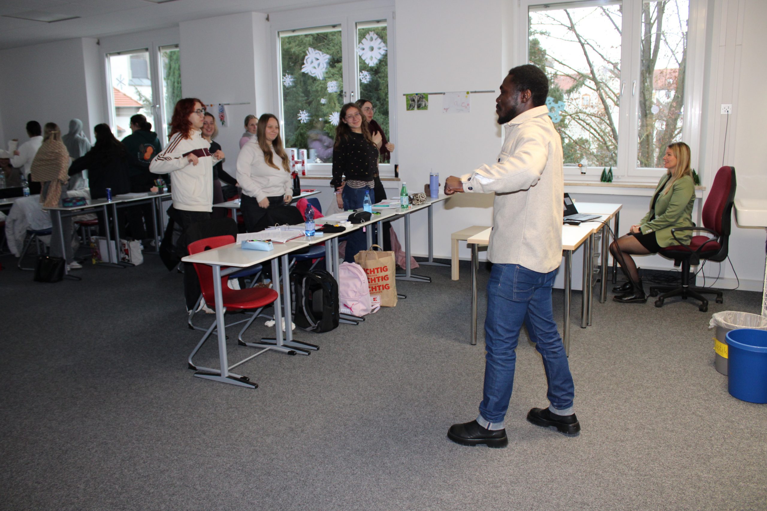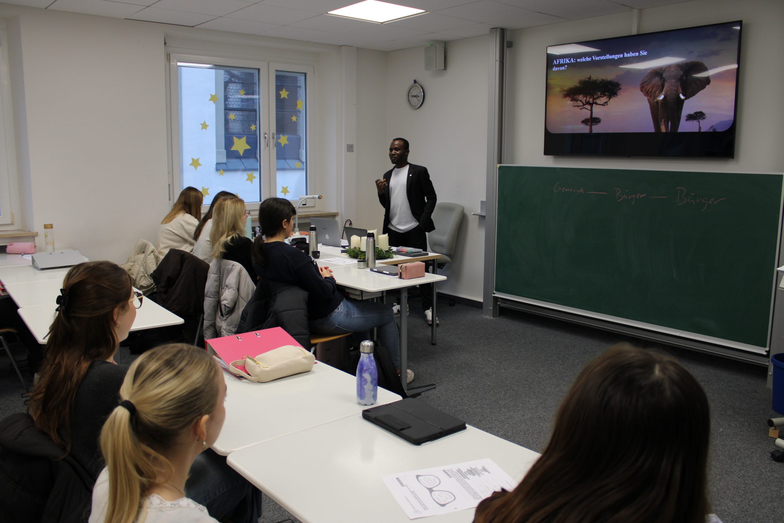 Einen weiteren spannenden Einblick bot Sayo Sangare mit seinem Vortrag „Afrika ist kein Land: Zwischen Realität und Stereotypen“. Ein kurzes Quiz zeigte, wie verbreitet Klischees über Afrika sind. Herr Sangare erklärte deren historische Wurzeln, stellte die Nachhaltigkeitsziele der UN vor und präsentierte bedeutende afrikanische Reiche. In kleinen Gruppen sammelten die Studierenden Ideen, wie man Stereotype bewusst hinterfragt und vermeidet.