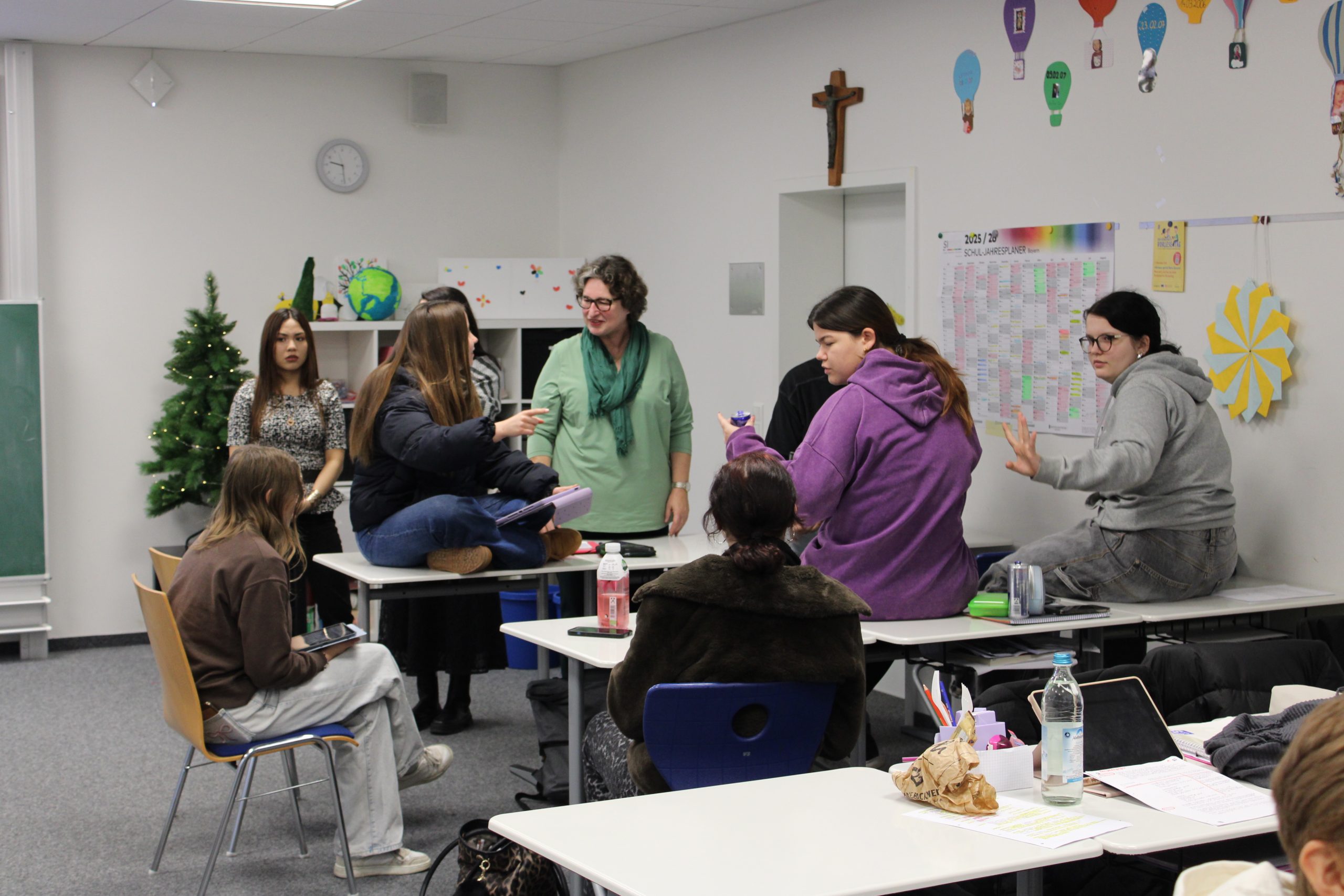 Am letzten Schultag vor den Weihnachtsferien gestalteten Frau Barfüßer, der Chor unter der Leitung von Frau Englert und die Studierenden der ersten und zweiten Klassen zusammen einen letzten gemeinsamen Adventsimpuls im Meditationsraum.