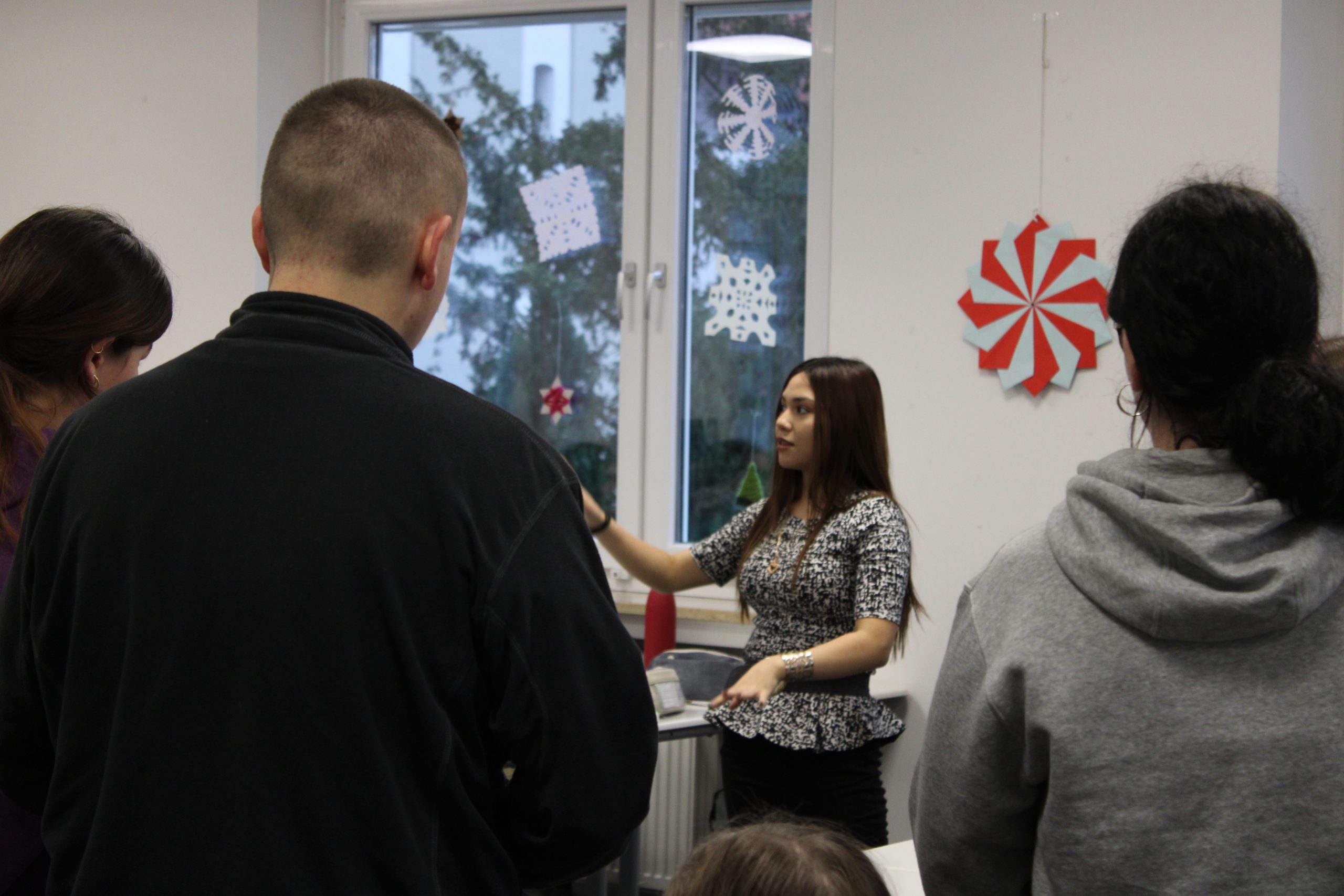 Gemeinsame Lieder wurden angestimmt und alle Anwesenden holten sich kleine selbst gestalteten Weihnachtsbäume mit dem Hinweis „Du bist perfekt so wie du bist“.