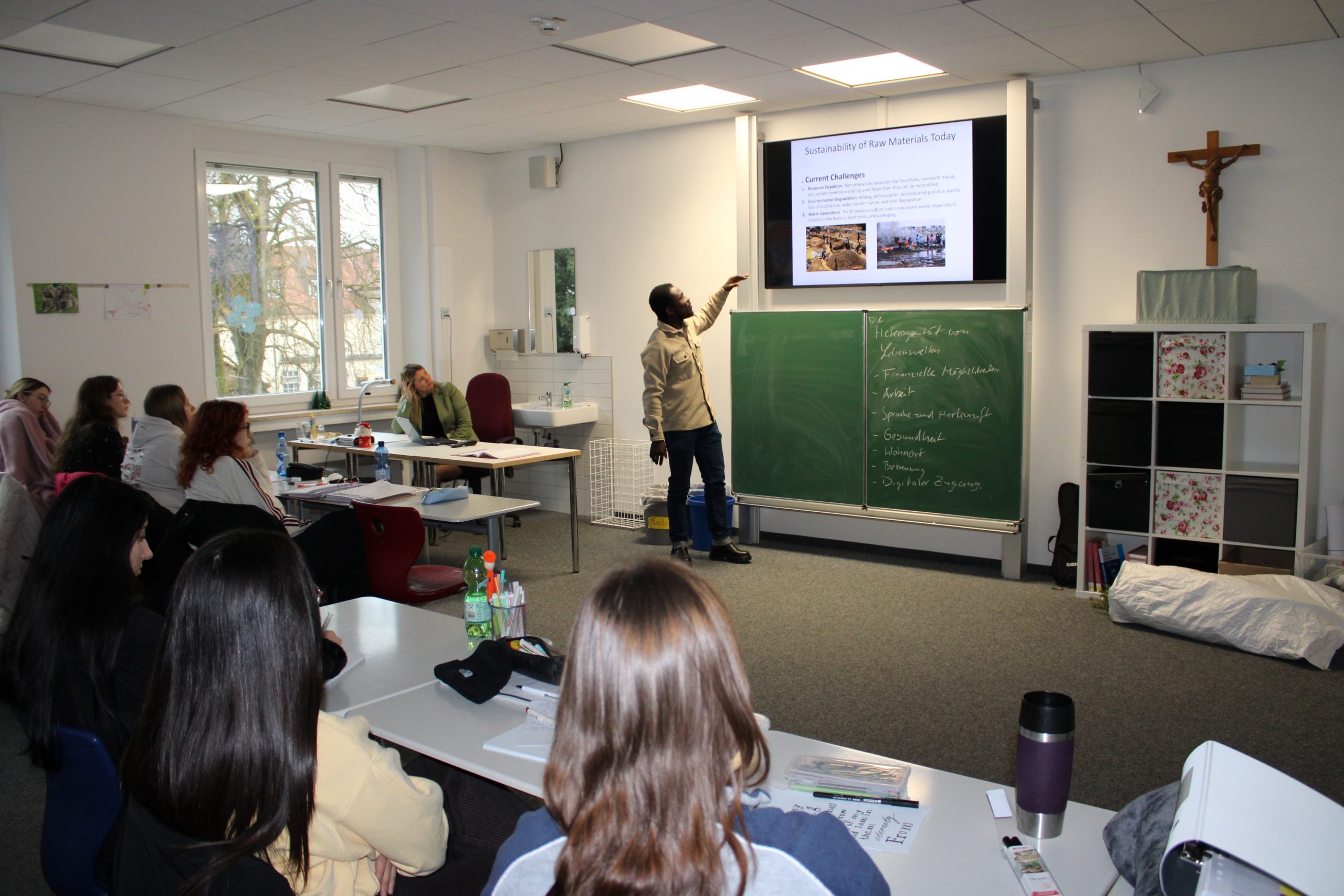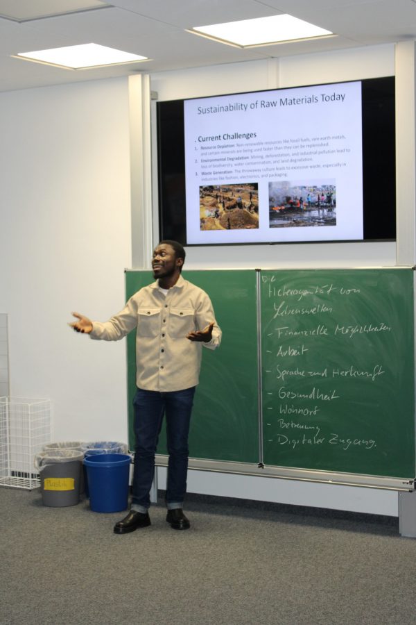 Sehr eindrucksvoll war der Vortrag „Proud of My Forest“ von Obed Nii Amarteifio. Er führte die Studierenden nach Ghana – sprach über kulturelle Traditionen, das Leben in Mehrgenerationenfamilien und die enorme sprachliche Vielfalt des Landes. Gleichzeitig machte er auf Herausforderungen wie Ressourcenknappheit, Umweltverschmutzung und fehlende Recyclingstrukturen aufmerksam. Seine Botschaft: Nachhaltiges Handeln ist immer auch soziale Verantwortung. Fragen waren ausdrücklich erwünscht und führten zu einem lebendigen Austausch.